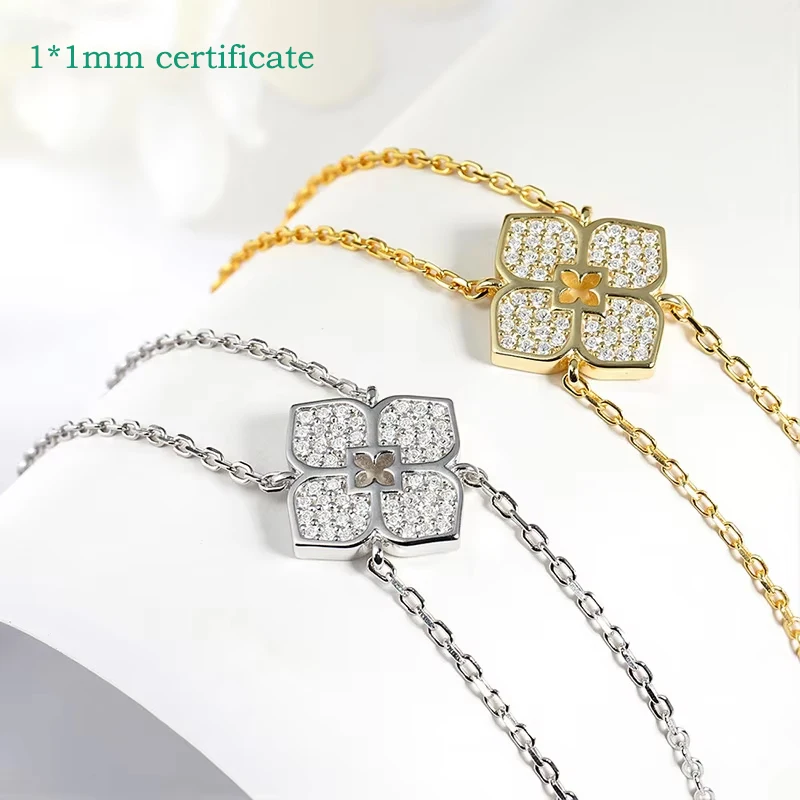 - Smyoue Full Moissanite Necklaces feature a sparkling flowers design that adds a touch of elegance and charm.