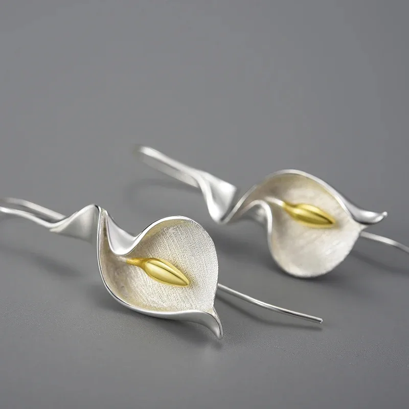 - 1 pair x Sterling Silver Dangle Calla Lily Earrings
