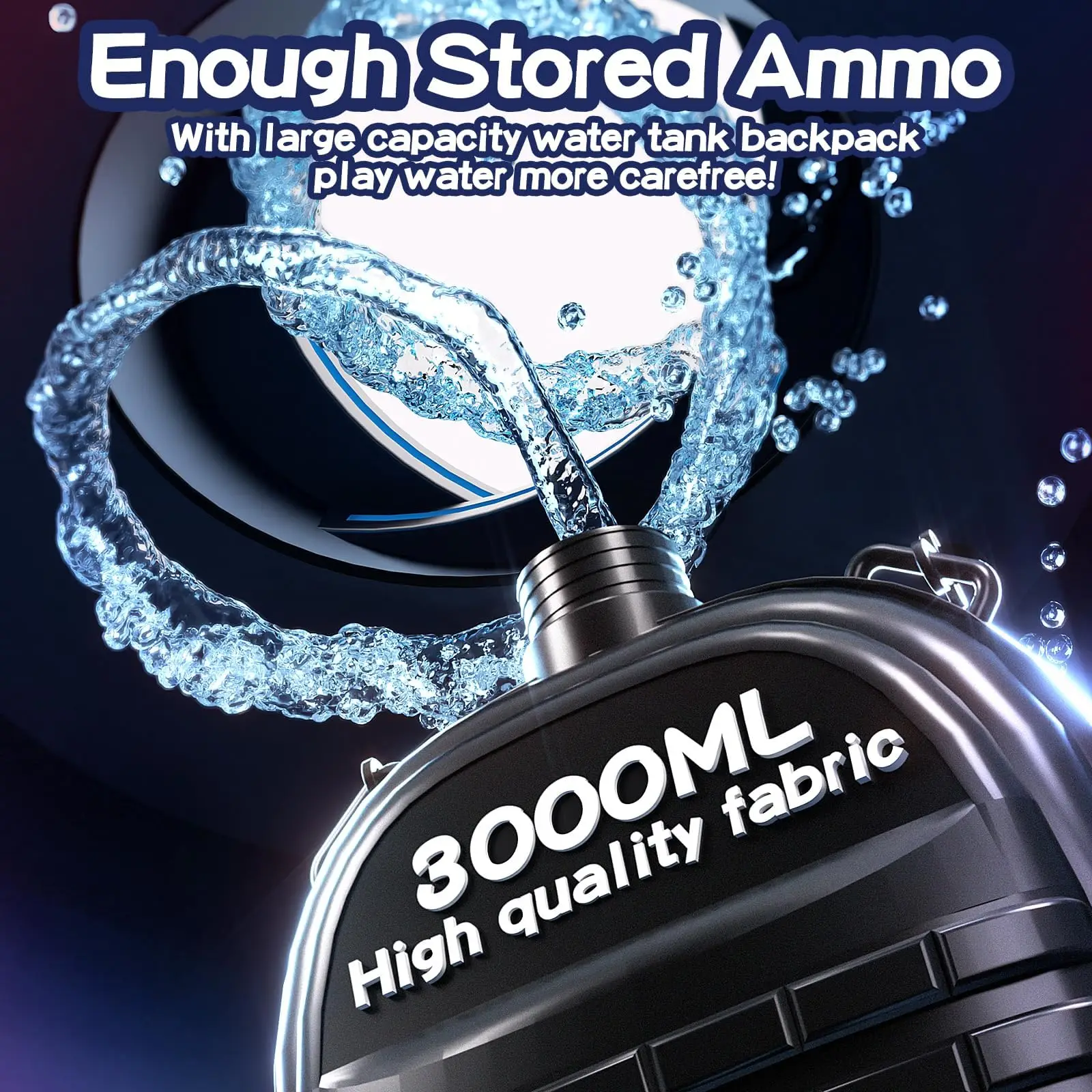 【Large Capacity,Bid Farewell to Tedious】Gatling water gun with large capacity design, one water injection, continuous fighting. With a large capacity backpack tank , you can enjoy non-stop shooting fun without the need for frequent refills.