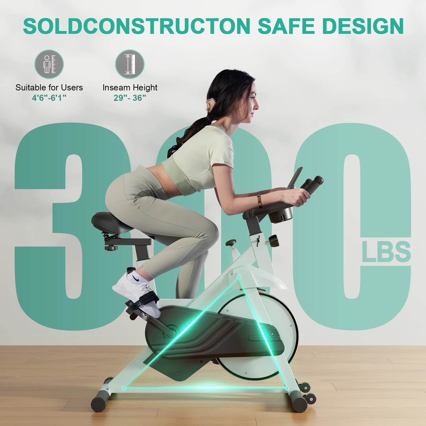 【Stationary Bikes for Home】 Exercise bikes by high density steel to ensure the durability and persistence. The indoor bike has a maximum weight capacity of 300 pounds and can accommodate a wide range of users. Its advanced resistance system makes your ride very quiet, so it is ideal for family workouts. spin bike is the perfect addition to any home gym, helping you stay fit and motivated