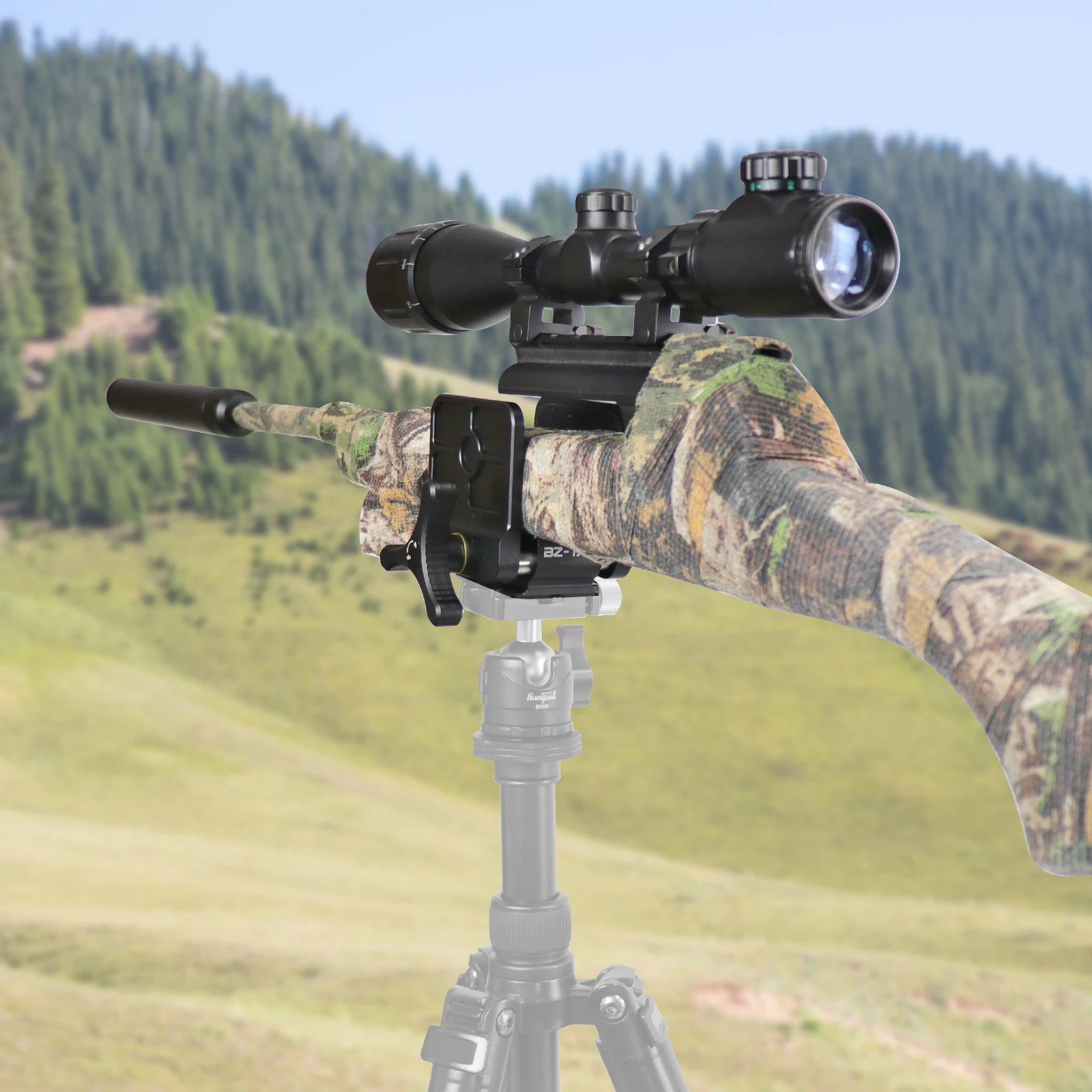 - The product is a clamp shooting tripod rest specifically designed for guns and rifles.