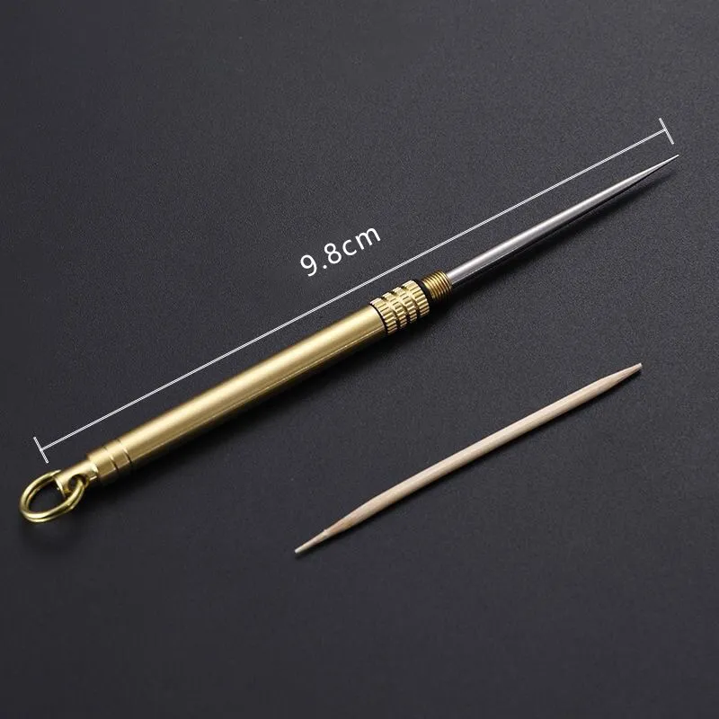 - The Titanium Outdoor EDC Portable Multi-Purpose Toothpick Bottle Fruit Fork Camping Tool is made of high-quality titanium, making it extremely durable and long-lasting. Unlike traditional dental floss, this toothpick tube can withstand outdoor conditions and rough handling without breaking or wearing out.