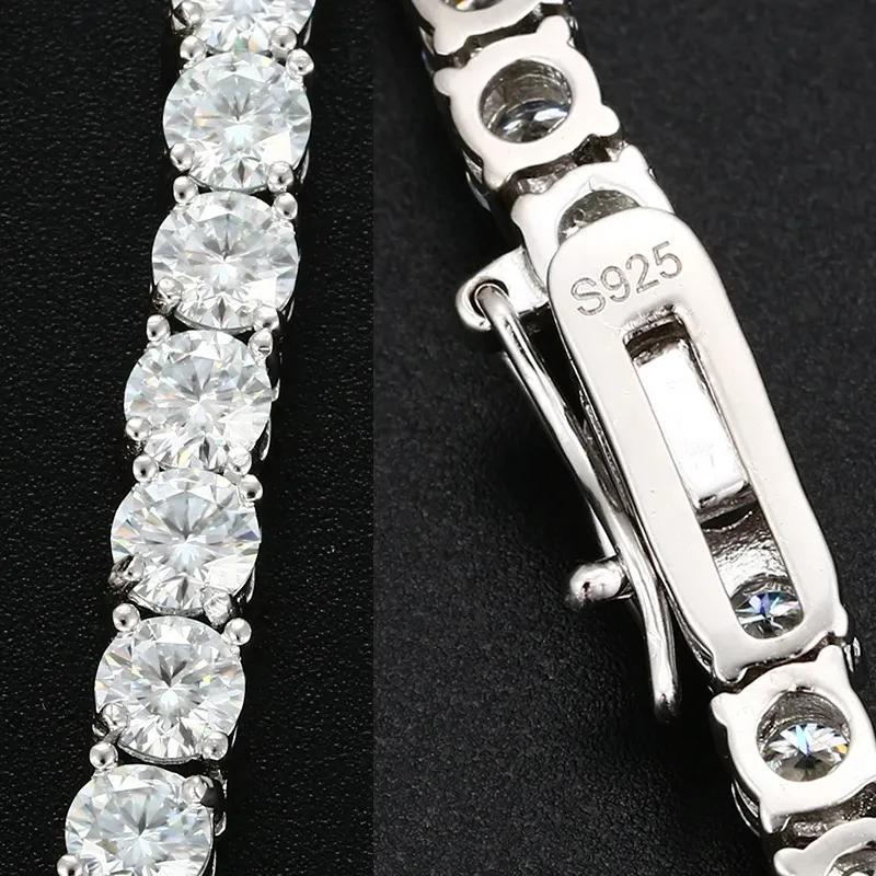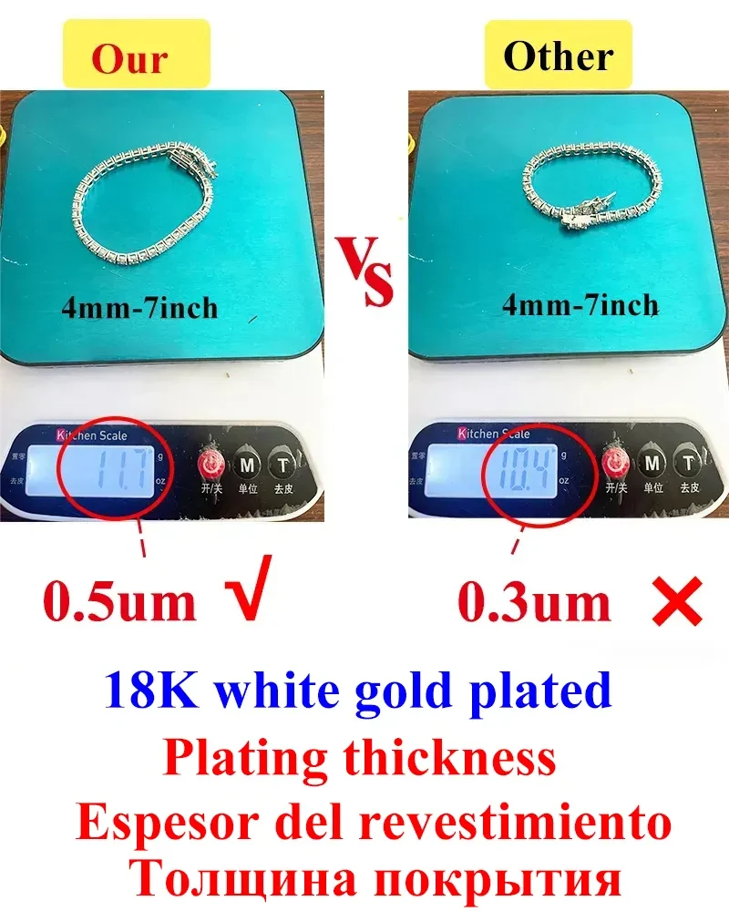 Our moissanite tennis chains are electroplated with 5 layers and many tennis chains of others are only electroplated with 1-3 layers.