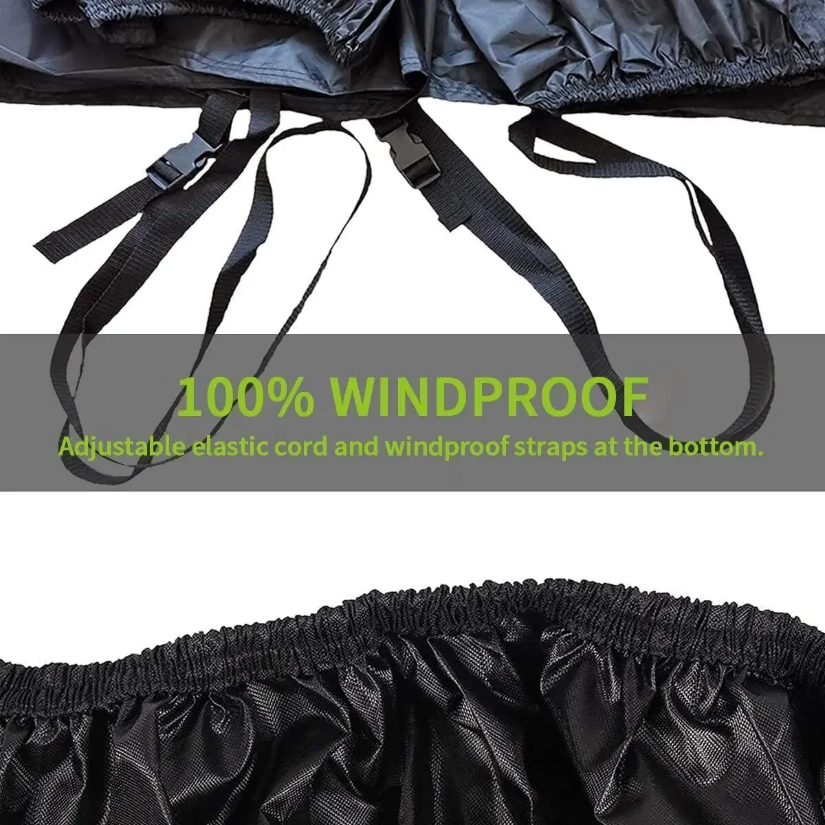 The UTV Utility Vehicle Storage Cover For Can-Am Maverick X3 Defender Max HD10 HD8 Compatible with Polaris RZR 4 XP 1000 900 is a versatile and durable accessory that protects utility task vehicles (UTVs) from environmental hazards. Crafted with high-quality materials, the cover provides a reliable shield against elements such as dust, rain, UV rays, and other outdoor conditions that may harm or degrade the UTV’s exterior and parts over time. Designed for a secure fit, the cover wraps easily around compatible UTV models like the Can-Am Maverick X3, Defender Max HD10 and HD8, as well as the Polaris RZR 4 XP 1000 and 900. Its sturdy construction ensures it remains stationary even under strong wind conditions. The cover is very practical, making it an efficient tool for long-term storage of UTVs or for situations where the vehicle remains idle for an extended period. Its functionality extends beyond protection as it also helps in maintaining the aesthetic appeal of the UTV by preventing scratches, dents, or any cosmetic issues due to exposure to harsh weather or environmental elements.