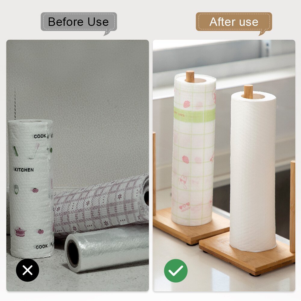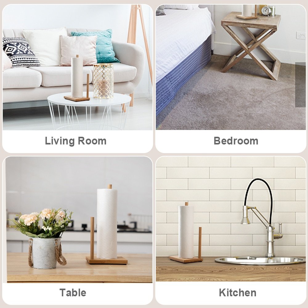 • This paper towel stand has a wooden material making it eco-friendly to use